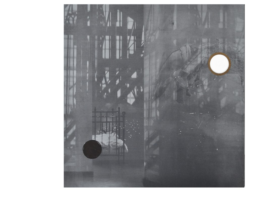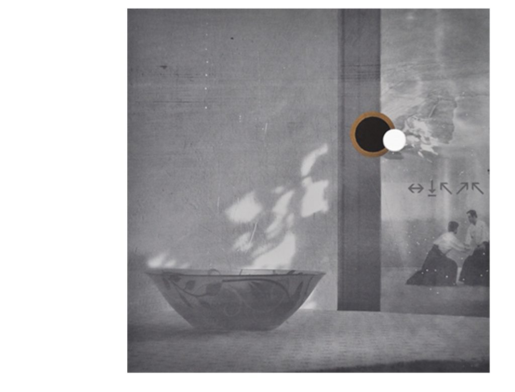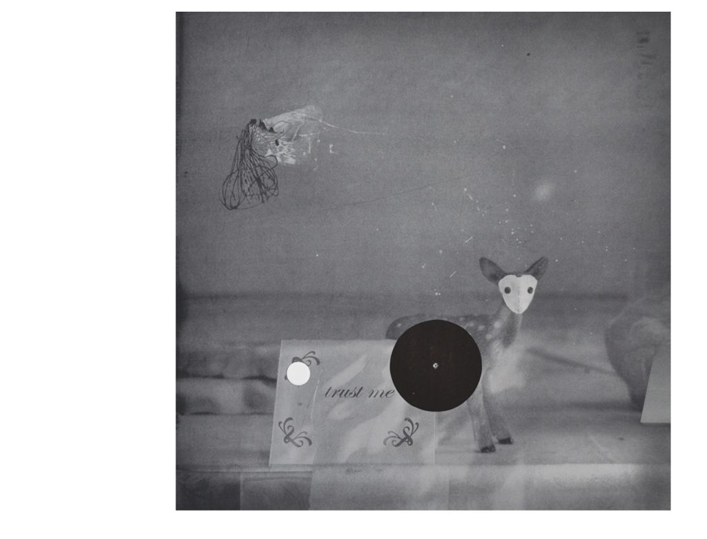 Композициите в графичната серия “Чуждо присъствие” са изградени като своеобразни “колажи” от лична фото документация и снимки, намерени в глобалната мрежа. Заемайки позицията на наблюдател (чуждо присъствие) търся да покажа (или да създам) една среда, изчистена от външни влияния (цветове, реклами, детайли). Композициите загатват за интериор на дом или условно пространство, където човек може най-цялостно да се концентрира в неговият вътрешен свят.Тук вмъквам елементи, нехарактерни за средата ( напр.първият космонавтски костюм, създаден за куче или сцена с японски борци), като по този начин целя да провокирам зрителят към свободна интерпретация, да размия границите между “реално-нереално”,“сън-илюзия”. Много от композициите включват сенки и отражения, които са въплъщения на мимолетнит,недействителните и променливи неща. Сянката създава само представата, но не показва истинският образ. Изрязаните концентрични кръгове търсят изграждането на допълнителен пространствен план, извън този на основната композиция. Директната интервенция в хартията (пробивът) подчертава мимолетност на носителят и “незащитеност” на изображението.